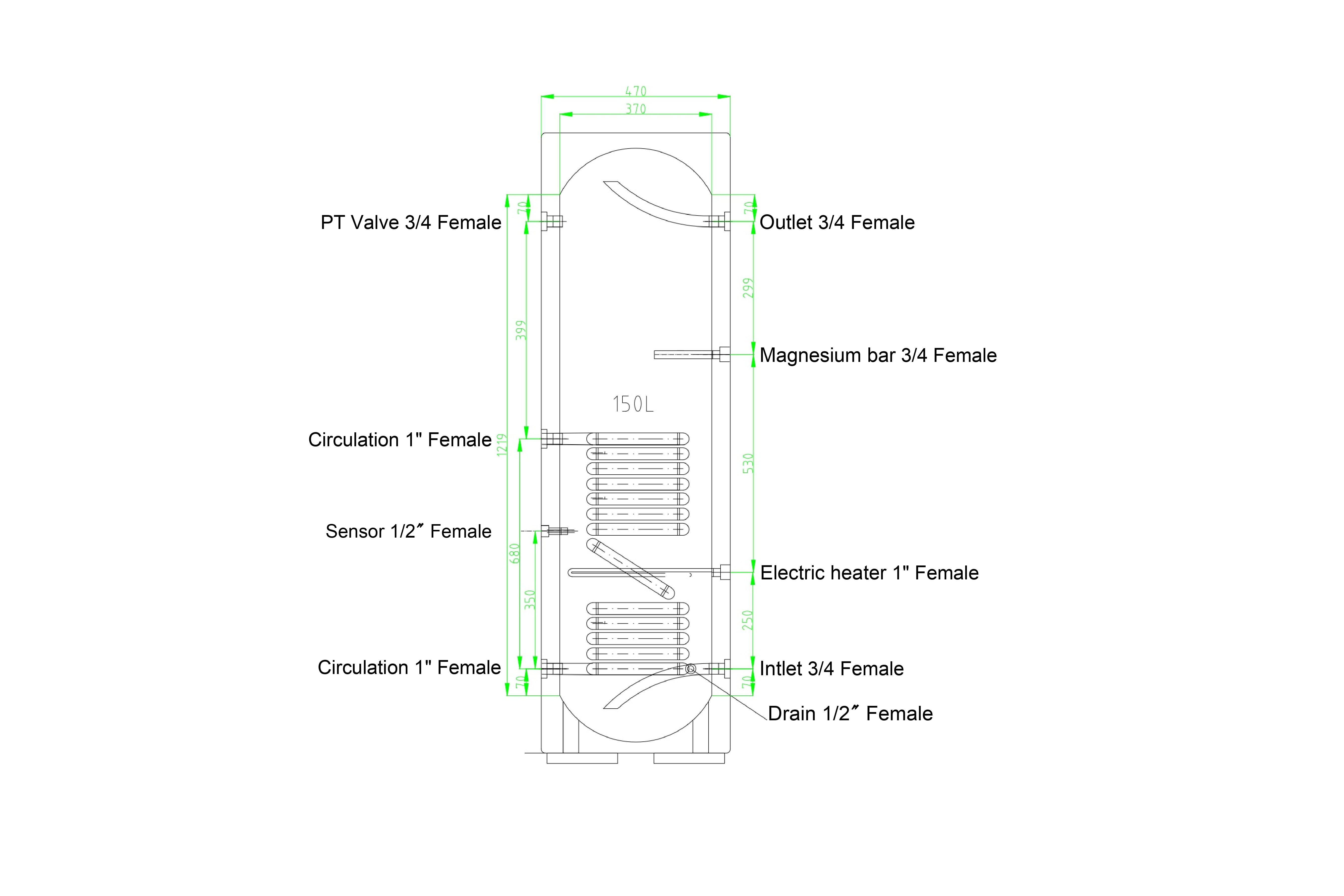 С голяма повърхност на намотката – това е най-добрият бойлер за термопомпа. Серпентината с площ от 2,22 м2 го прави идеален за термопомпи.