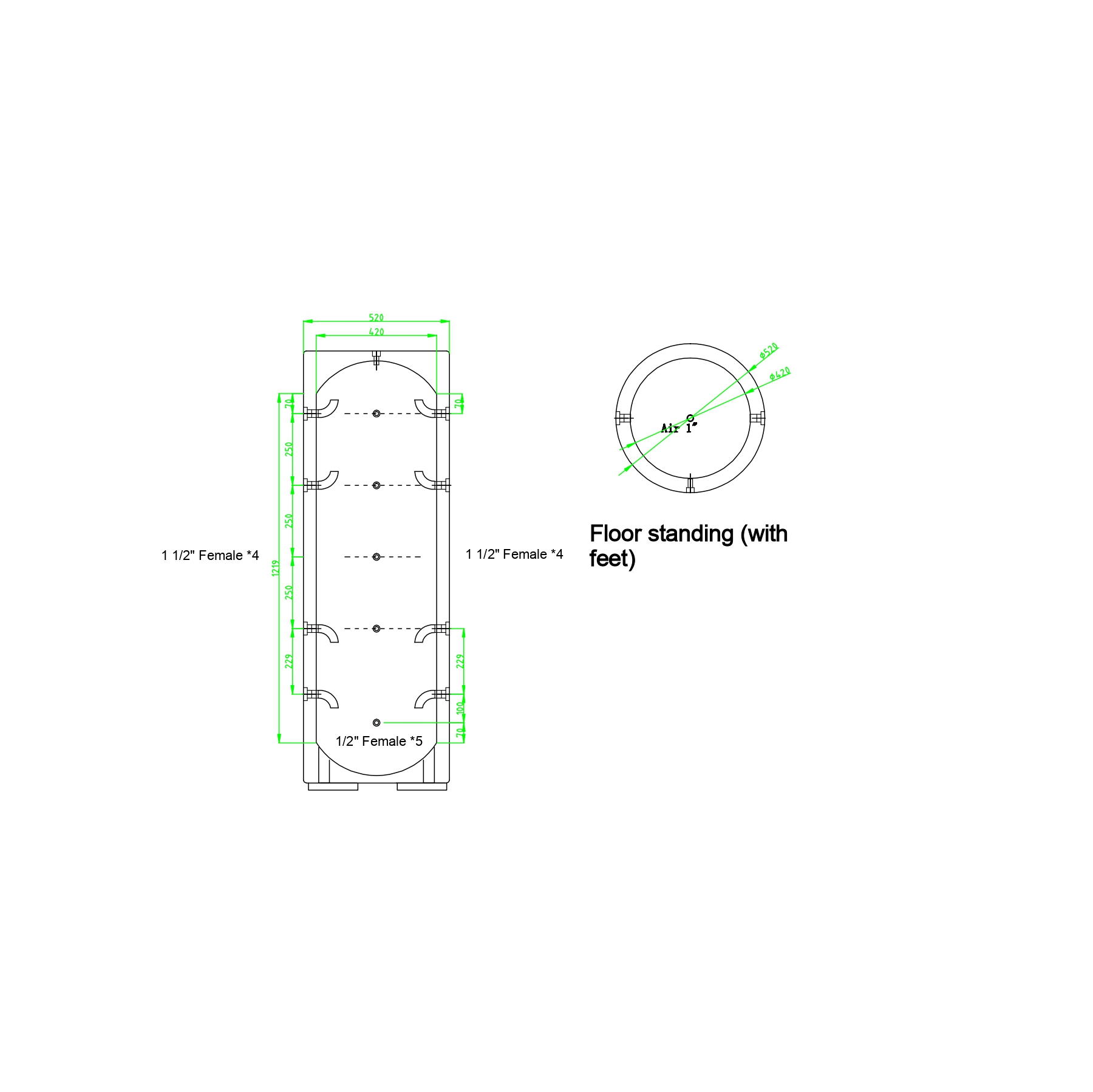 Чрез множество технологични отвори (муфи) буферният съд предлага редица удобни начини на свързване и може да бъде разположен навсякде. Монтажът може да бъде стенен или подов. В него няма вградени серпентини.